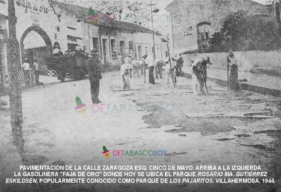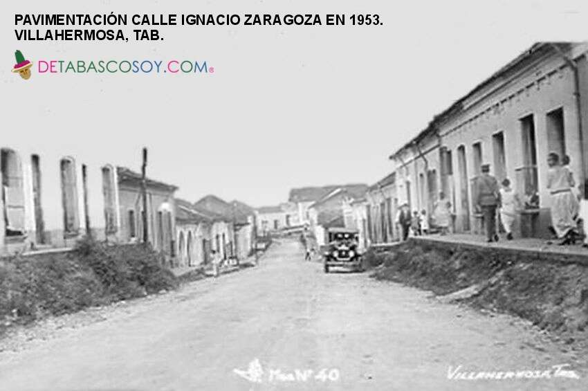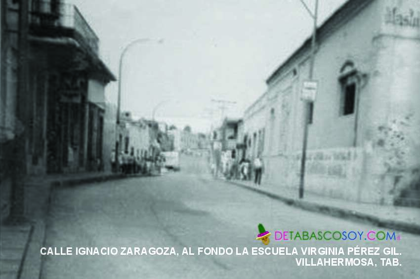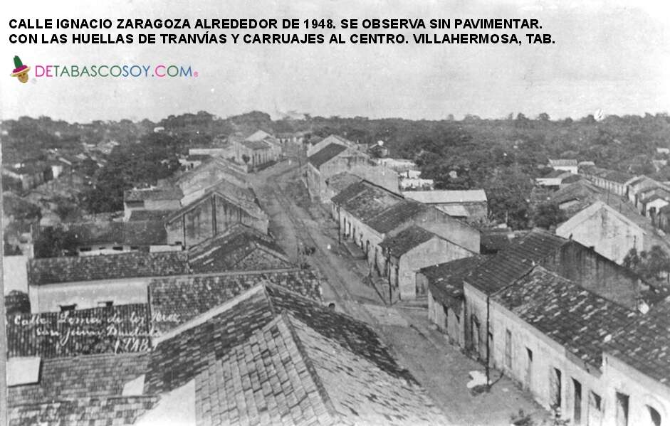 Por la calle Zaragoza pasaban las mulitas y luego los tranvías de motores de gasolina. En la esquina con la calle Juárez se encontraba “La Vega de la Portilla” y cruzando seguía el Teatro Merino. En 1935 en la esquina con Madero se ubicó el edificio social de la federación general de trabajadores de Tabasco y del local de las Ligas de Resistencia.