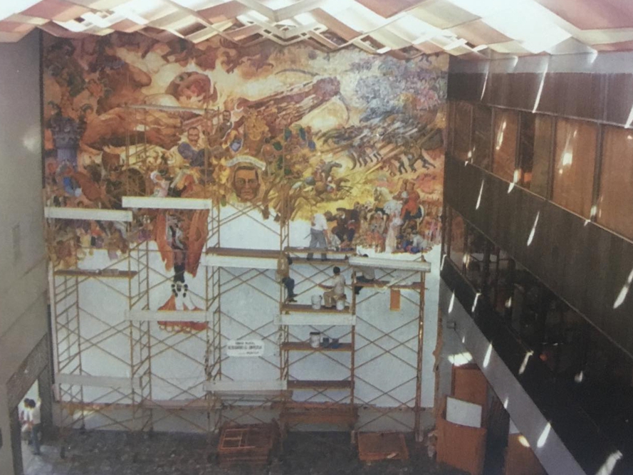 Gracias a esta preparación, los muros de las paredes laterales de las escalinatas del edificio del zócalo de la ciudad de México, se cuartearon, pero no se derrumbaron, porque fueron detenidas por la película de los murales, que por el contrario , sólo quedaron levemente marcados, en menos de medio metro lineal, con una especie de relieve casi imperceptible.