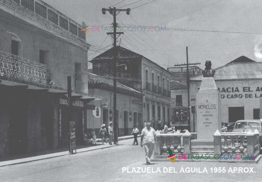 En el año de 1944 se inauguró el monumento al generalísimo José María Morelos, en una plazuela que se ubica en el cruce de la avenida 27 de Febrero con la calle Miguel Hidalgo, en el Centro de Villahermosa (de acuerdo a la fecha que se observa en una fotografía de la época). Consistía en un basamento sencillo sobre el cual se encontraba un busto del héroe y un águila con las alas extendidas, ambos de argamasa.
